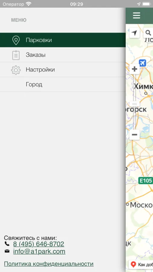 • осуществить бронирование и оплату парковочного места, используя банковскую карту;
