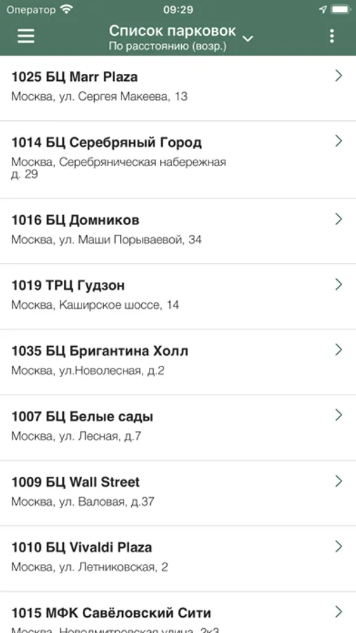 • Актуальная информация о парковках в БЦ, ТЦ, гостиницах и регулярное пополнение базы данных о парковках Москвы и МО.