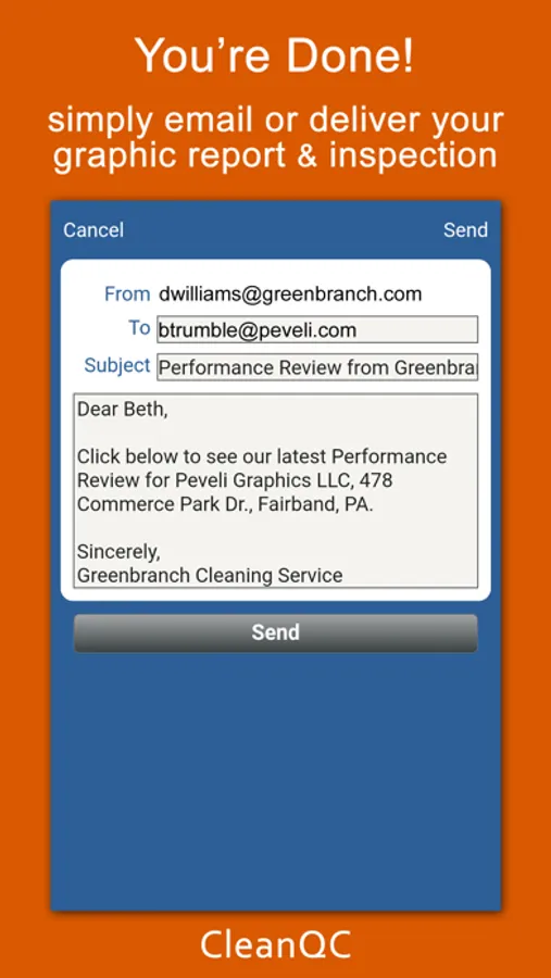• Engage Customers! You’ll love emailing or personally delivering our one-of-a -kind ‘Performance Review' of any inspection, for any customer, at any time – highlighting your quality control efforts in an easy-to-understand, graphical format.