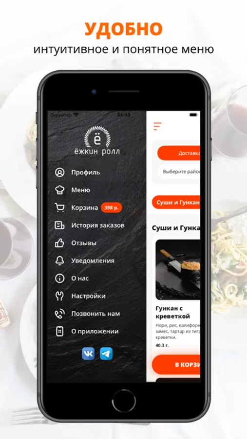 Приложение Ёжкин Ролл — это удобный способ заказа еды домой или в офис! Мы готовим наши блюда из качественных свежих ингредиентов и доставляем еду быстро и бережно.