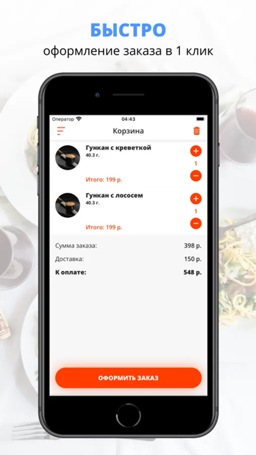 Скачивайте наше приложение, оформляйте заказ и наслаждайтесь любимой едой, где бы Вы ни были! Приятного аппетита!