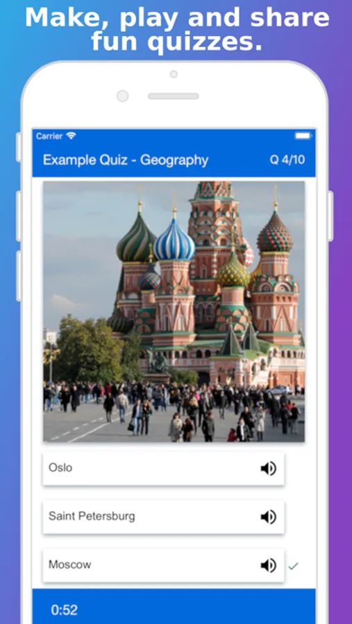 You can also create, play and share your quizzes across your iPhone, iPad, Mac or PC by uploading them to our website Topgrade.App. Topgrade also supports the Schoolwork app so teachers can set quizzes as assignments.