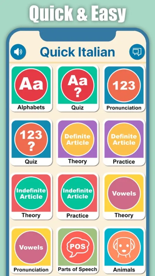 Quick and Easy Italian Lessons are Designed by experts to help travellers, school students and even if you need fast, easy and quick Italian learning guide this app is perfect for you.