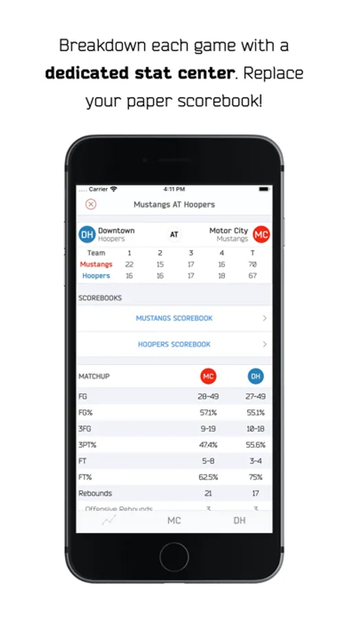 SCOREKEEPERS: Gone are the days of pencil and paper scorebooks. With our intuitive scorekeeper, you have the power of an entire Sports Analytics Team right at your fingertips.