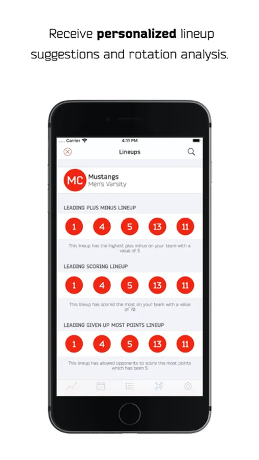 LINEUP ANALYSIS: Stat breakdowns per lineup. See lineups such as which has the highest +/-, which lineup turns the ball over the most, or even your leading rebounding lineup.