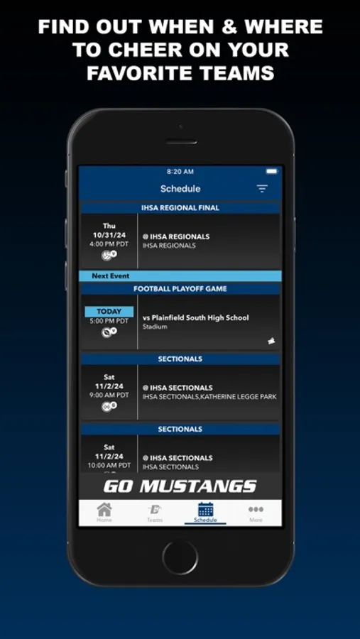 The Official DGS Mustangs application is your home for Downers Grove South High School Athletics! Whether you’re on campus or on the go, this app is a must-have for ALL Mustangs fans.