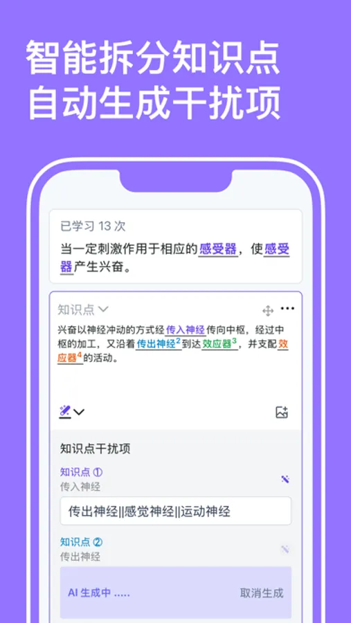 【智能出题,高效练习】根据知识点自动生成各种题型和干扰项,全面考察你的学习成果,帮助你巩固知识,查漏补缺,精准练习,事半功倍!