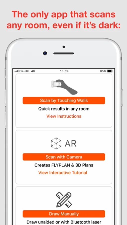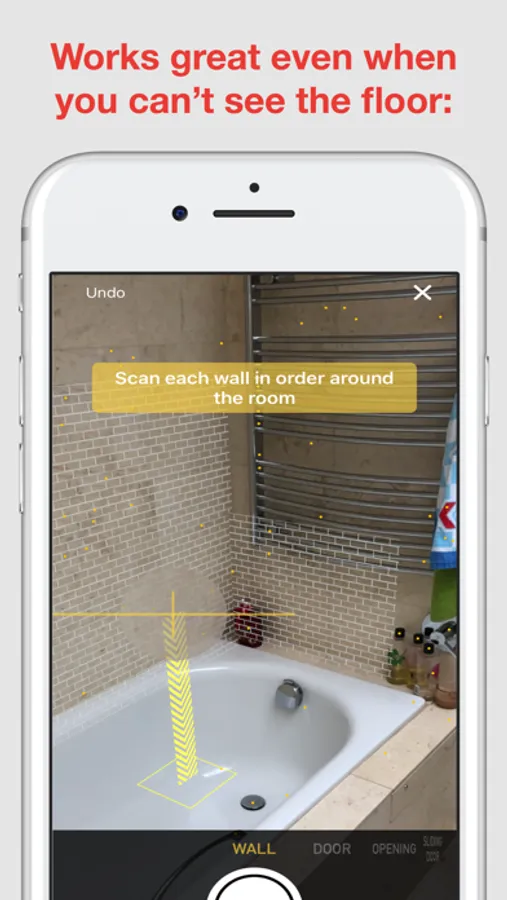 RoomScan Classic creates floor plans using "Touch Phone Against Walls" — perfect where the view of the floor is blocked or poorly-lit, just touch your phone against each wall for a rapid plan.