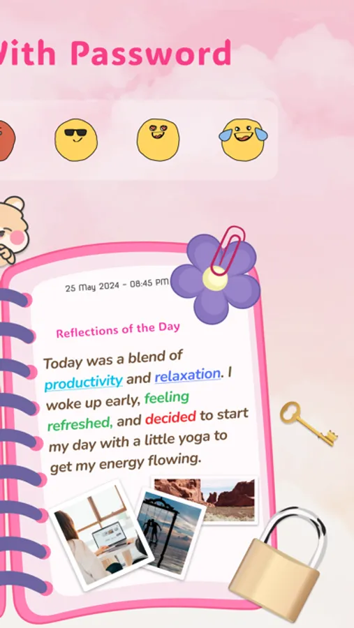 - Complete privacy: Keep your secret diary entries secure with password protection, ensuring your private thoughts stay safe. This private journal offers top-notch security for your most sensitive memories.