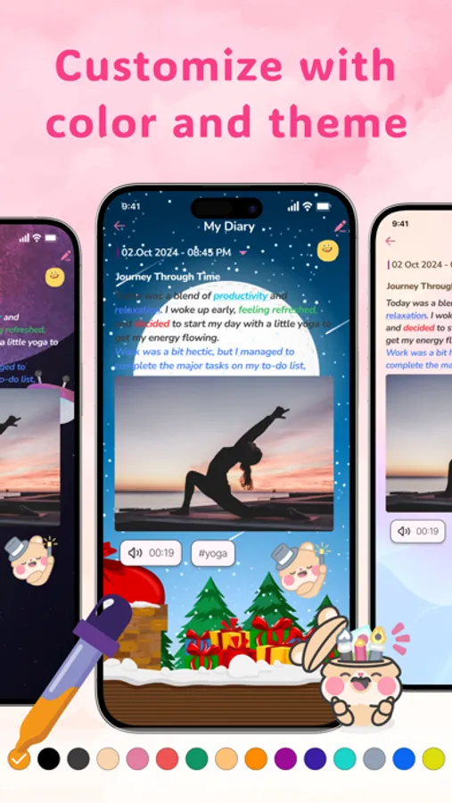 Make your daily diary journal truly your own! Choose from a variety of beautiful backgrounds to set the perfect tone for your entries. Personalization is key, and you’ll have plenty of tools to express yourself fully: