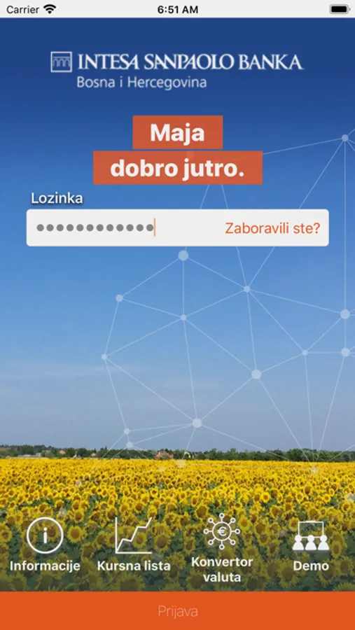• m-Intesa aplikacija je zaštićena sigurnosnim uređajem u obliku tokena ugrađenog u samoj aplikaciji. Pristup aplikaciji nije moguć bez lozinke koju znate samo Vi;