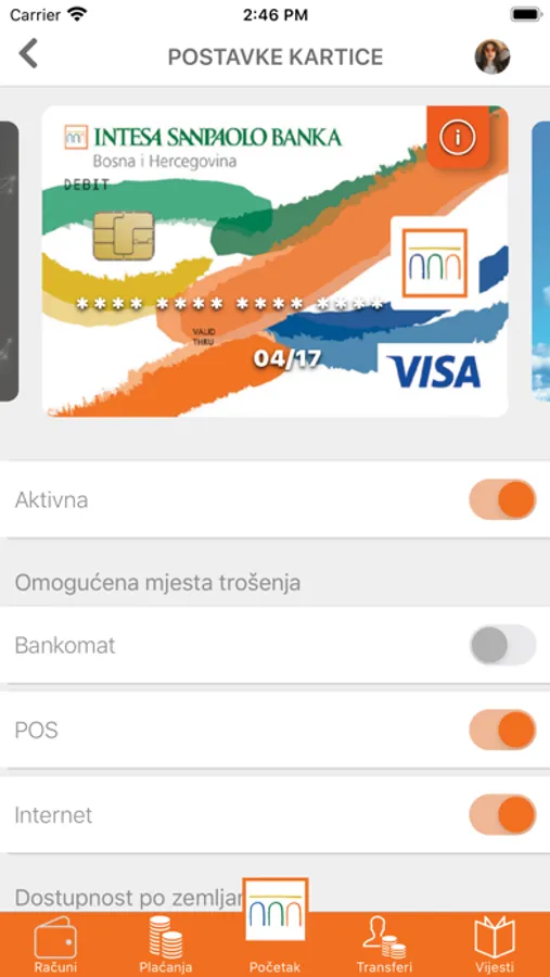 • Privremena blokada/deblokada debitnih kartica i to po različitim kanalima: internet, POS, bankomat, u zemlji ili van zemlje