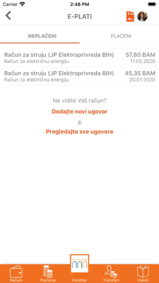 • Plaćanje režijskih računa jednim klikom uz opciju e-Plati