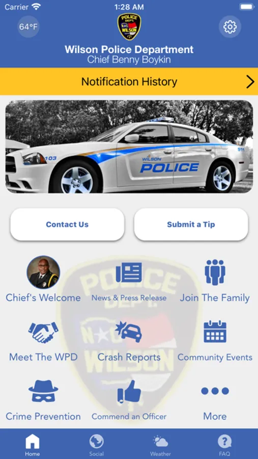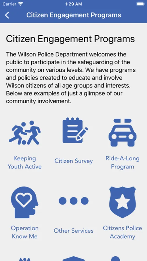 The Wilson Police Department mobile application is an interactive app developed to help improve communication with area residents. The Wilson Police Department app allows residents to connect with the Wilson Police Department by reporting crimes, submitting tips, and other interactive features, as well as provides the community the latest public safety news and information. The app is another public outreach effort developed by the Wilson Police Department to improve communication with county residents and visitors. This app is not intended to be used to report emergency situations. Please call 911 in an emergency.