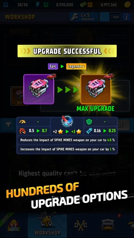 - Rich car customization and upgrades