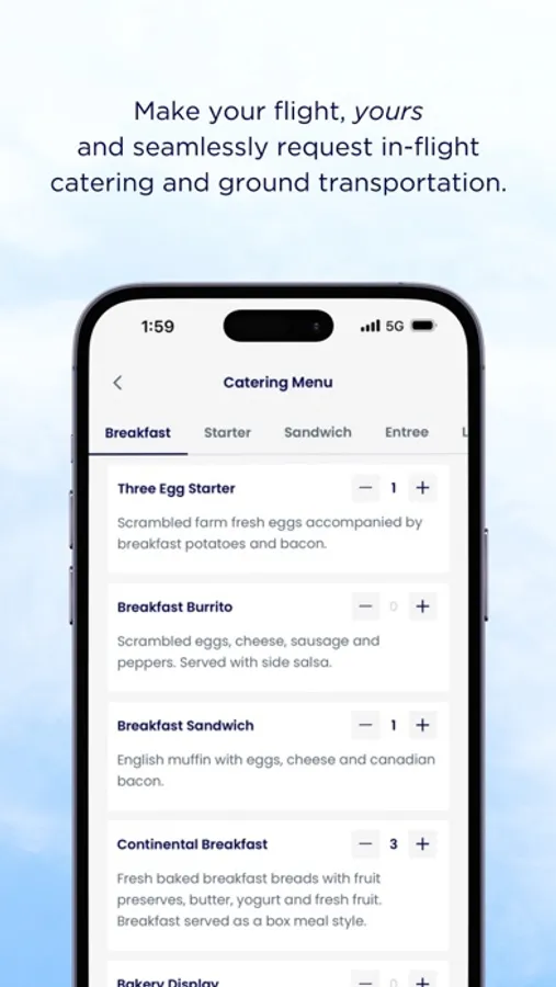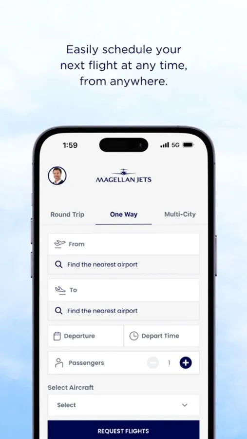• Effortless Booking: Easily schedule your next flight at any time, from anywhere.