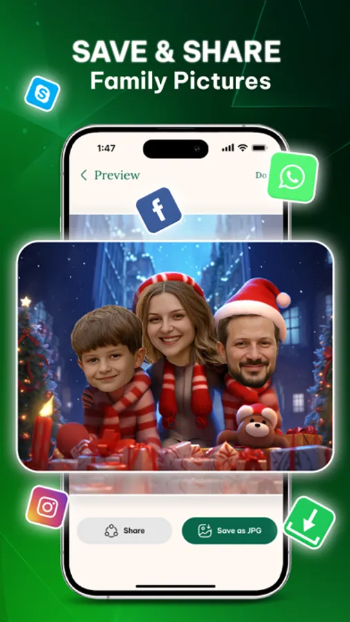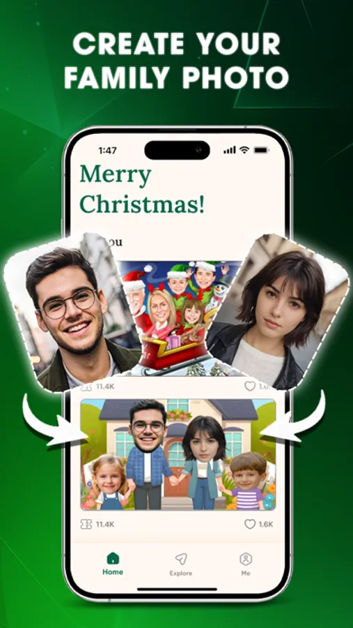 The app’s cut and paste face feature adds a fun, innovative twist to family pictures. Easily select faces from different photos and bring everyone together in one frame. This unique photo family editor allows you to blend family members, creating a family collage that feels complete and connected, even when a group shot isn’t possible. This is ideal for adding some creativity or humor to your family photo collages and for making memorable combinations that will make everyone smile.