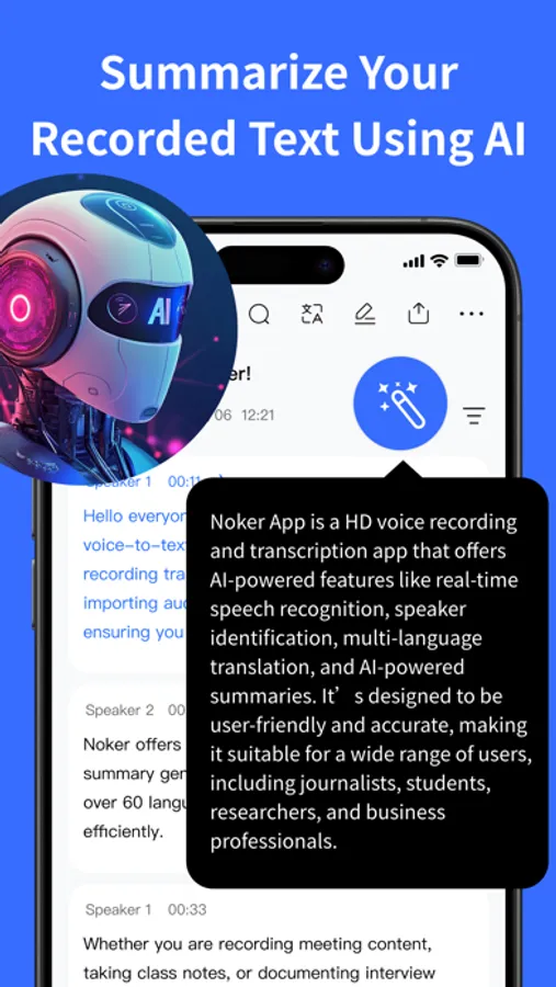 Noker uses more advanced AI tools to transcribe text more accurately and quickly, helping you work and study efficiently. It is your intimate pocket assistant, don't miss it!