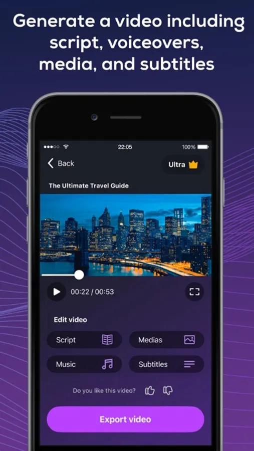 No more spending time browsing through endless stock images, hiring freelance scriptwriters, auditioning voiceover artists, or editing with complicated tools. Simply enter your concept, and VideoAI will generate a video complete with a script, voiceover, visuals, and subtitles.