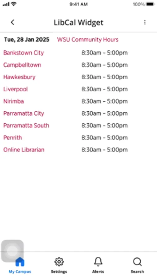 • Connecting to the main Western Sydney University app for other services like shuttle tracking, email and vUWS access.