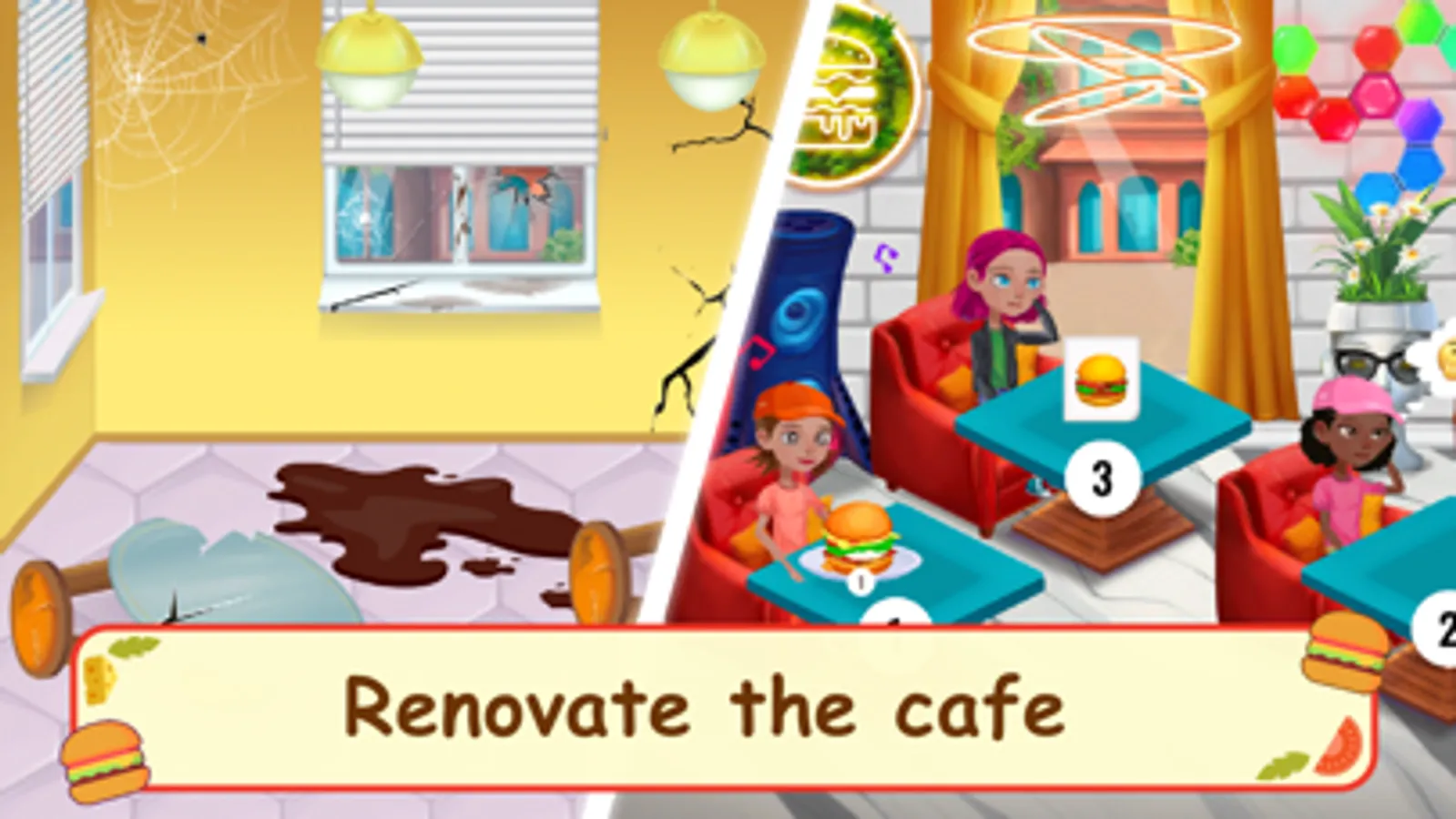 – Customization: Choose your restaurant's design and upgrade the interior to attract more customers.