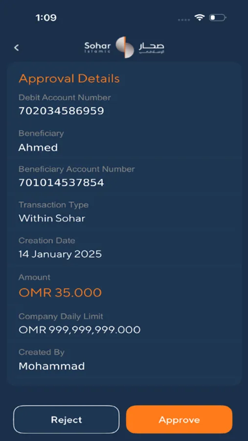 "Welcome to Sohar Islamic business mobile application designed exclusively for our wholesale banking clients. The app enables you to login and approve various transactions using your biometrics on the move.