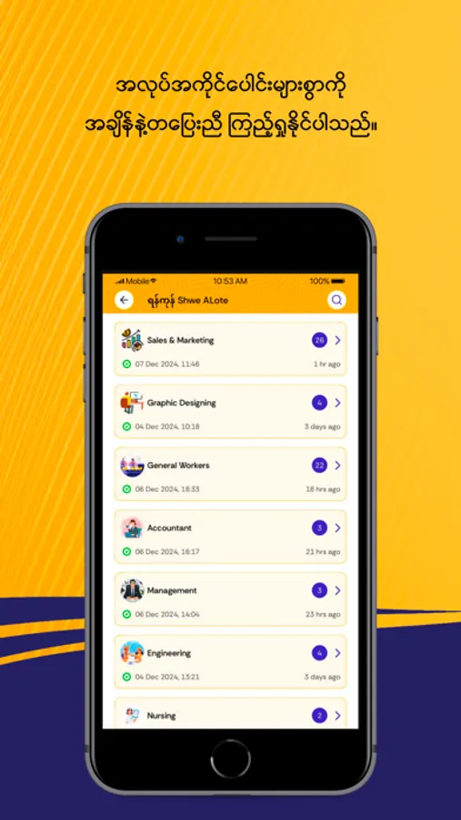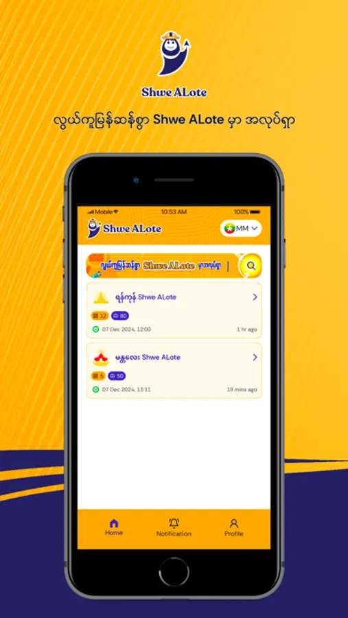 Shwe ALote is a comprehensive job search app designed to connect job seekers with local and global opportunities. Whether you're looking for your next career move or exploring global prospects, Shwe ALote provides real-time job listings across various industries. The app allows users to easily share job postings with friends via social media platforms, helping you spread opportunities within your network. With Shwe ALote, finding and sharing your next job has never been easier.