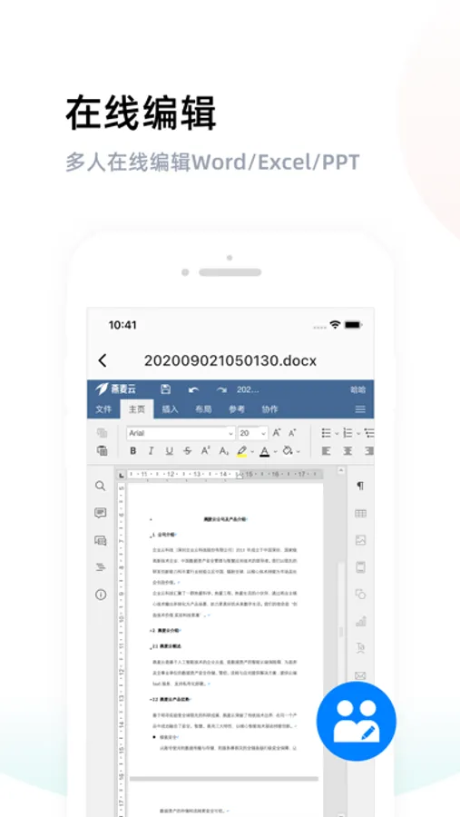 • 在线编辑: 多人在线协同编辑Word/Excel/PPT,支持在线演示PPT。