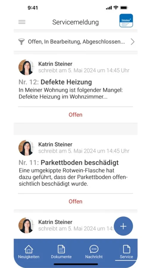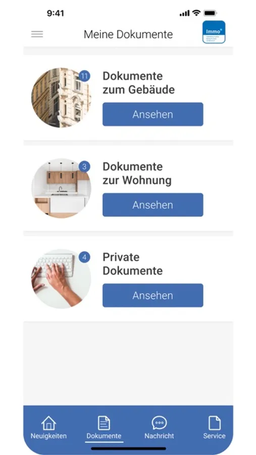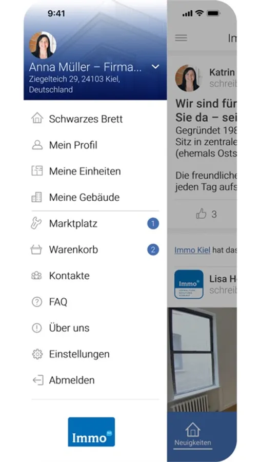 Als Kunde der IMMObilien & Verwaltungs GmbH profitieren Sie von einem besonders innovativen Kundenservice, der Ihnen viele Freiheiten bietet. Mit der Immo Kiel App können Sie uns rund um die Uhr Anliegen und Schäden inklusive Fotodokumentation per Smartphone melden. Zusätzlich stellen wir Ihnen eine digitale Dokumentenmappe mit wichtigen Dokumenten für Ihre Immobilie zur Verfügung. Über das digitale schwarze Brett informieren wir via Push-Nachricht proaktiv über wichtige Informationen rund um das uns anvertraute Objekt.
