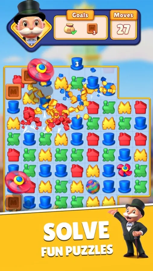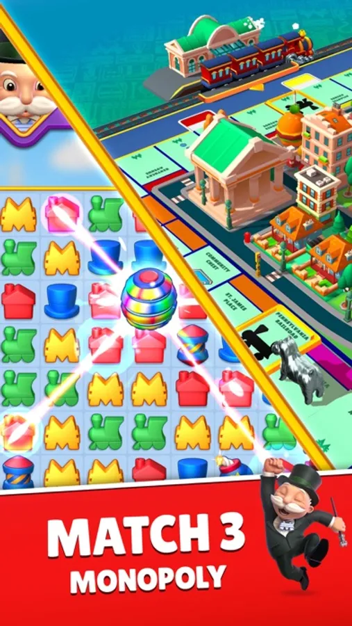 Experience the excitement of MONOPOLY like never before with match 3 gameplay powering your progress!