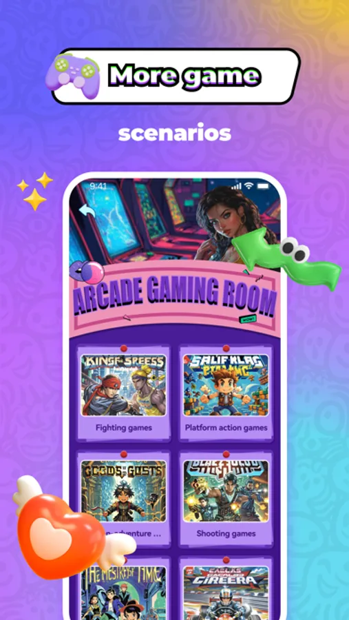 Discover online users, switch to chat mode, and change game scenes to increase the diversity and excitement of arcade games.