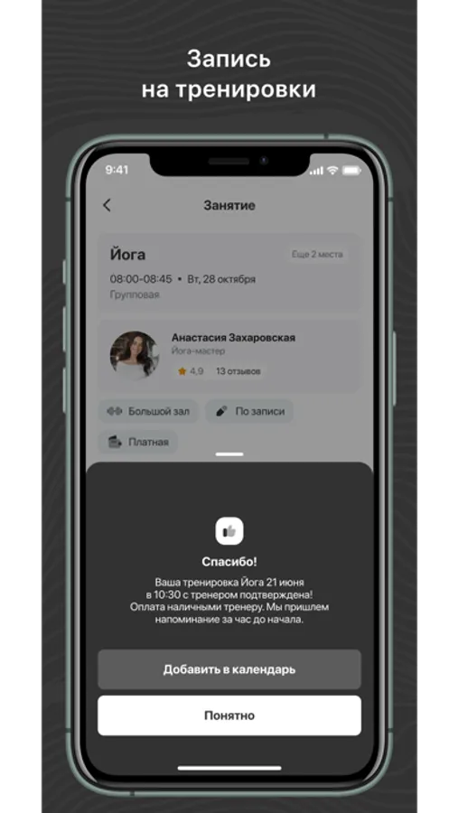- Записаться на групповые тренировки;