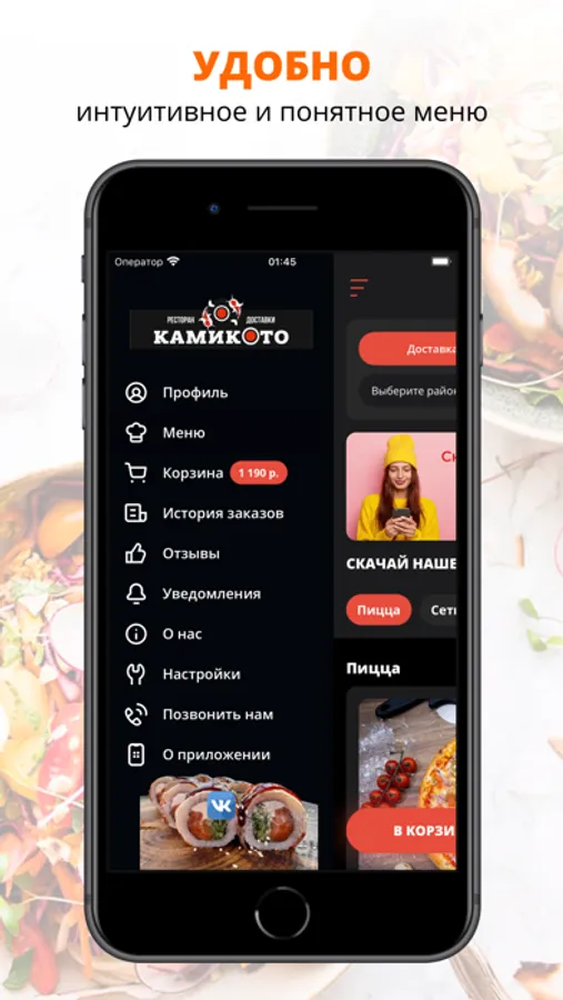 Приложение КамикОтО | Златоуст — это удобный способ заказа еды домой или в офис. Всегда в нашем меню - вкусные роллы, пицца, салаты.