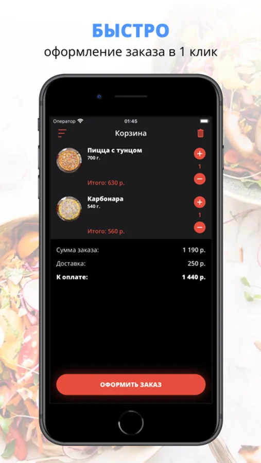 Скачивайте наше приложение, оформляйте заказ и наслаждайтесь любимой едой, где бы Вы ни были! Приятного аппетита!