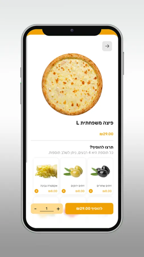 - הוספת פריטים מועדפים מהתפריט לסל בקלות