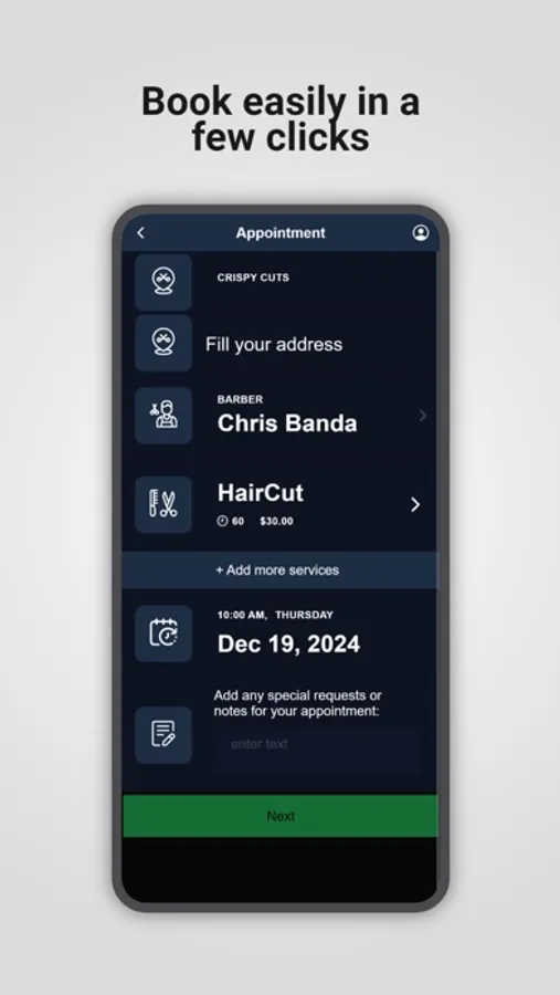 Download our booking app to schedule your next haircut or grooming session with ease. Browse available time slots, choose your favorite barber, and book appointments quickly—all from the convenience of your phone