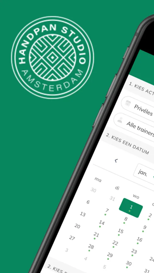 Download de Handpan Studio app met de volgende functionaliteiten: