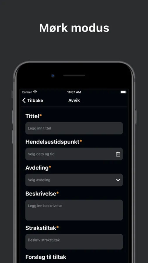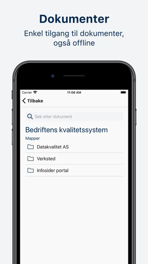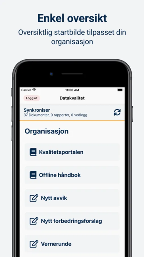 App for å registrere avvik eller andre meldinger i Datakvalitet avvikssystem, samt lese dokumenter fra Elektronisk Kvalitetshåndbok.