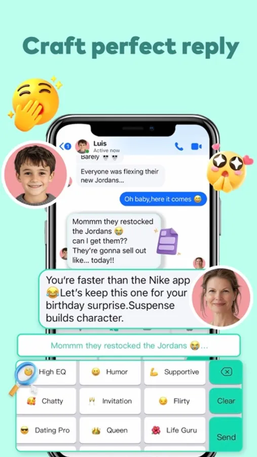 Works with WhatsApp, Messenger, Instagram, Tinder, Telegram, iMessage, and more