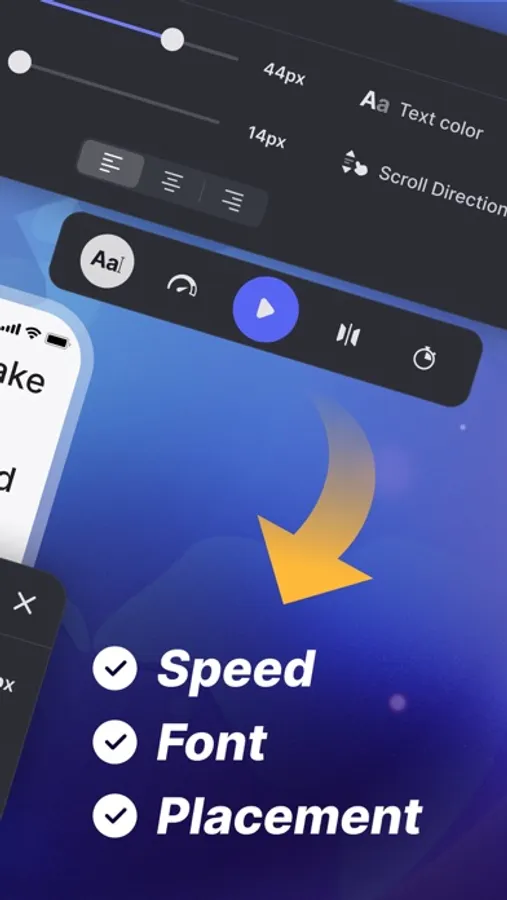 • Customizable Scrolling: Adjust speed, font, and text placement to match your speaking style.