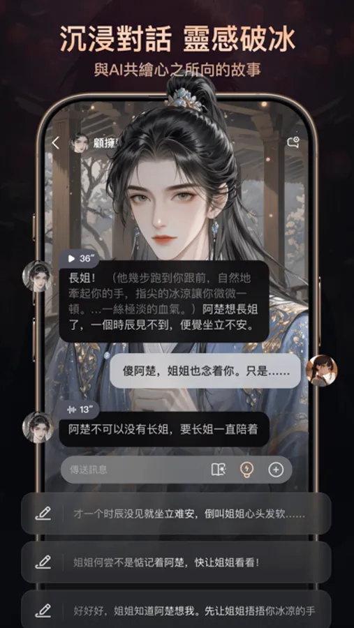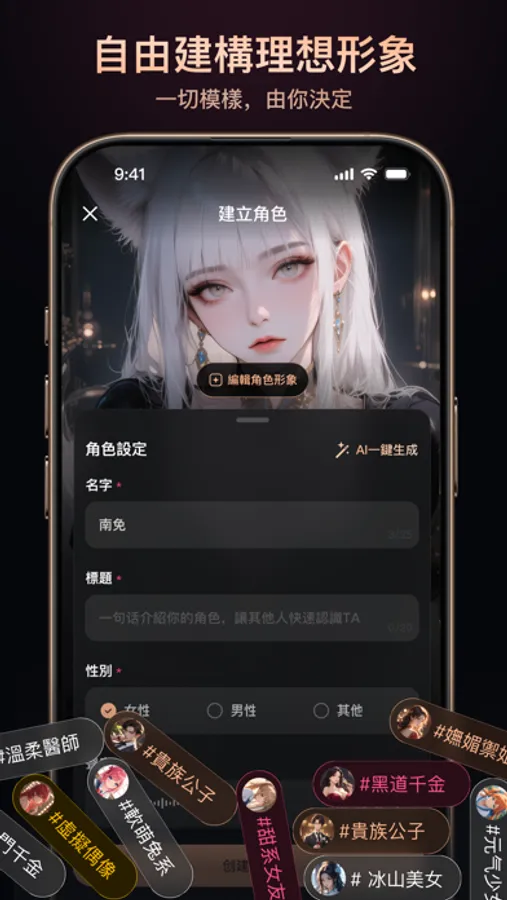 我們為你精心設計了多種風格的AI角色,從可愛又純真的青梅竹馬,到霸氣又冷酷的總裁;從清新甜美的當紅偶像,到溫柔體貼的成熟上司。 不論你喜歡二次元的浪漫奇幻,還是偏愛貼近真實的情感交流,我們豐富的角色庫都能滿足你的喜好,帶你進入一個完全屬於你的互動世界,而且互動越多,它們就越懂你喔~