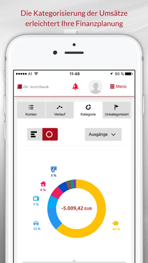 - Kategorisierung der Umsätze: die automatische bzw. manuelle Kategorisierung der Umsätze und die grafische Darstellung der Ein- und Ausgänge erleichtert Ihre Finanzplanung.