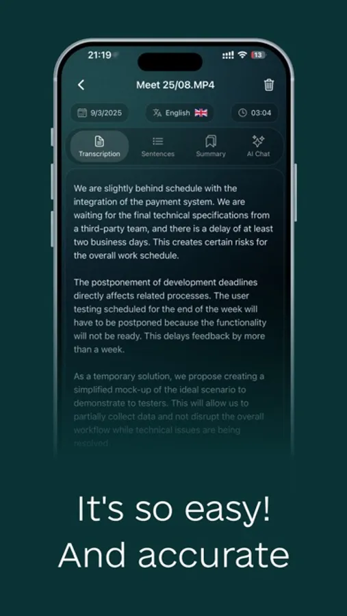 • Works with voice memos, meetings, lectures, podcasts & notes