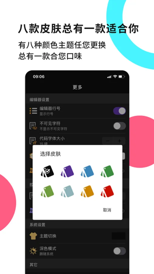 5. Multi-skin support: There are eight skin types for you to change, dark mode, light mode switch;