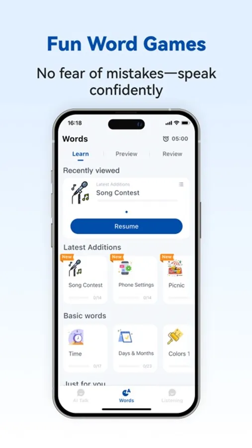 >>Gamified Vocabulary Learning: Fun and engaging exercises for memorizing words and mastering sentence patterns.