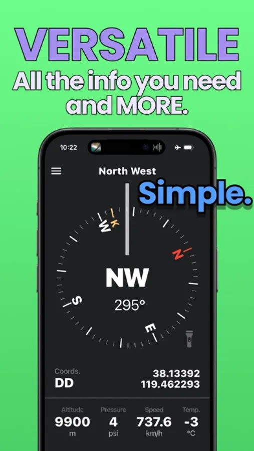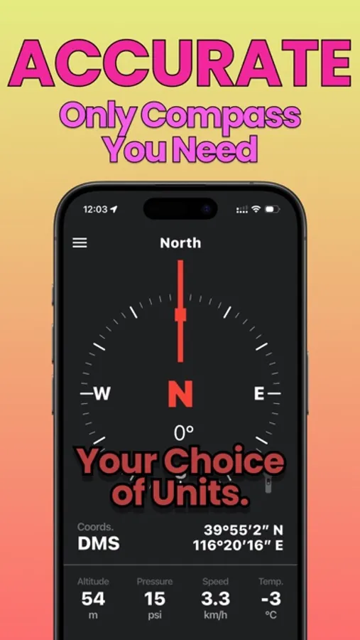 Navigate EASY with Compass One; get handy information like current location (geographic coordinates, using gps), altitude, atmospheric pressure, current speed, current feels-like temperature in addition to precise pro compass.