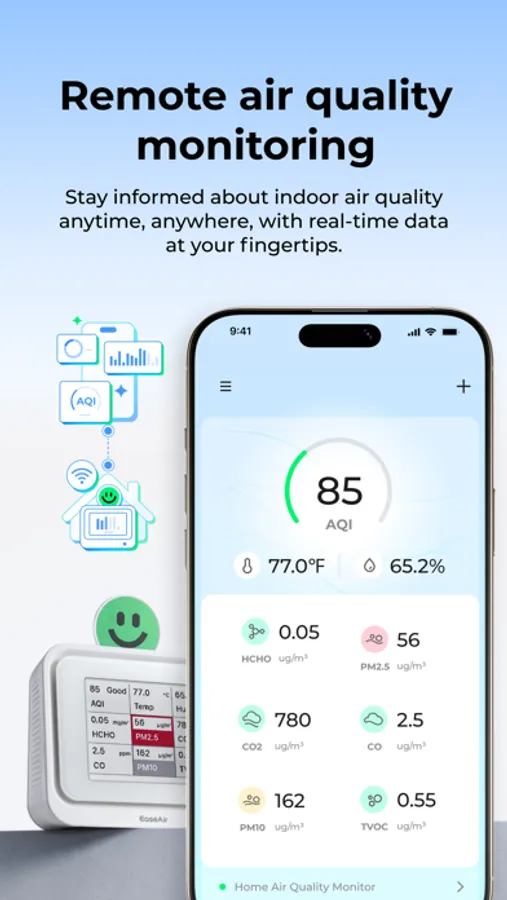 Stay informed about indoor air quality anytime, anywhere, with real-time data at your fingertips.