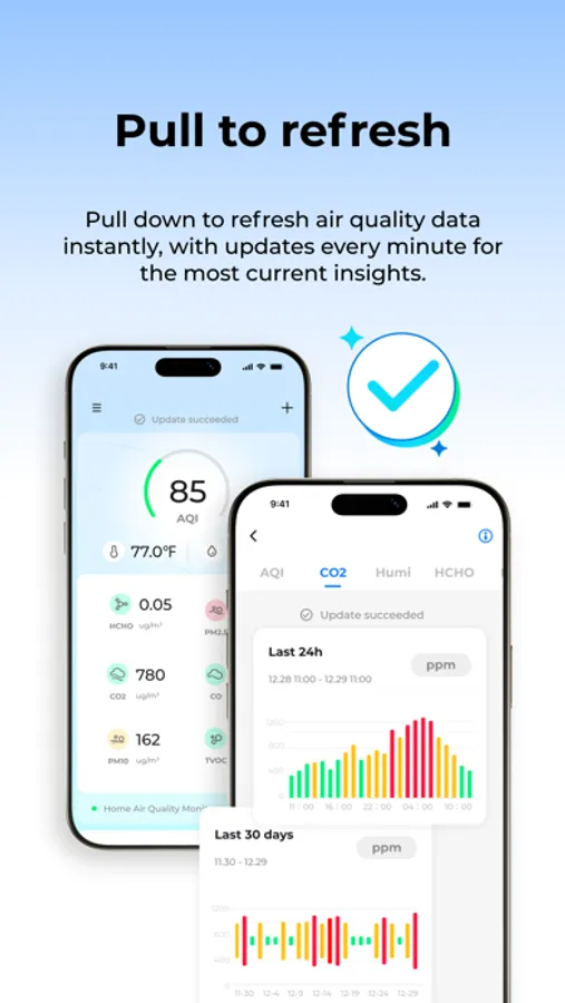 Pull down to refresh air quality data instantly, with updates every minute for the most current insights.