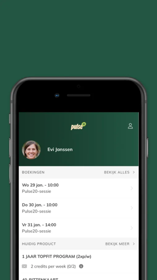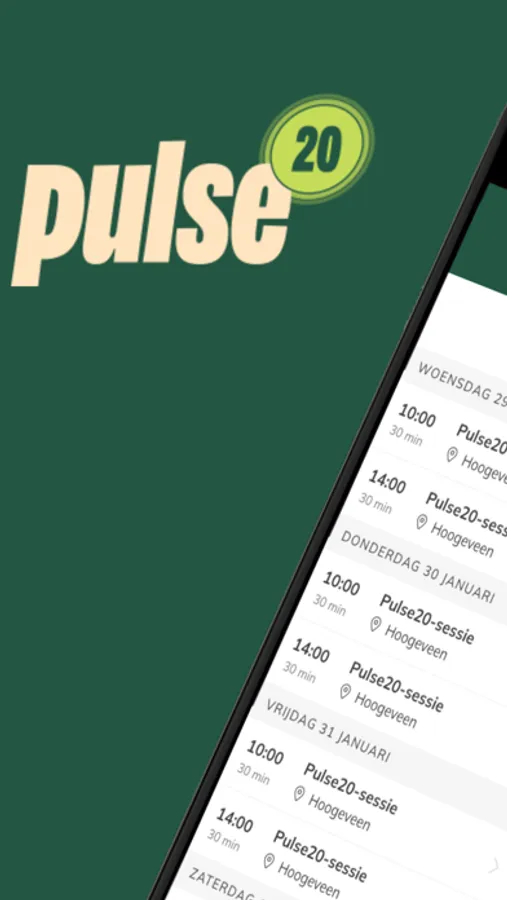 Download de Pulse20 app met de volgende functionaliteiten: