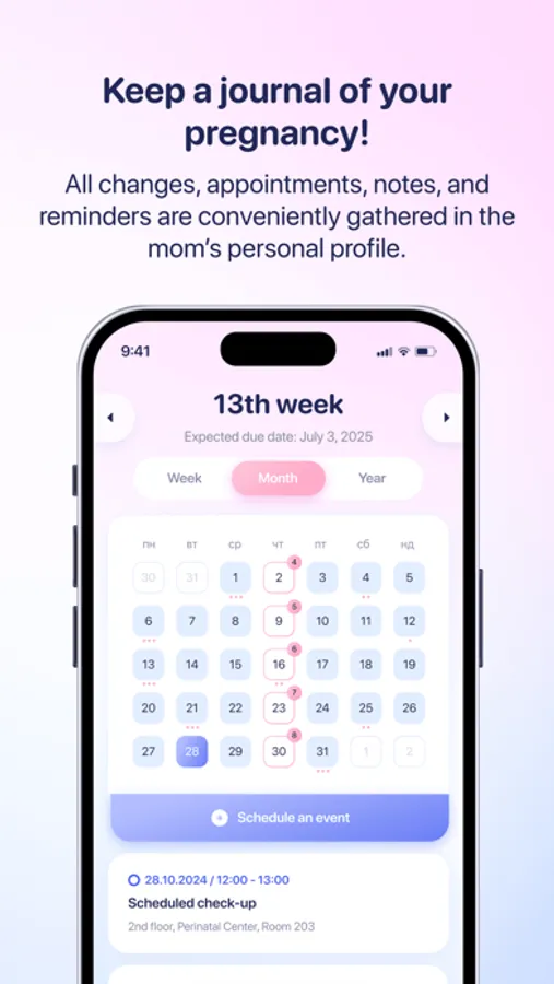 - Medical and Personal Diary: Use our diary feature to log important notes and thoughts throughout your journey. Stay organized and reflective as you prepare for your newborn’s arrival.
